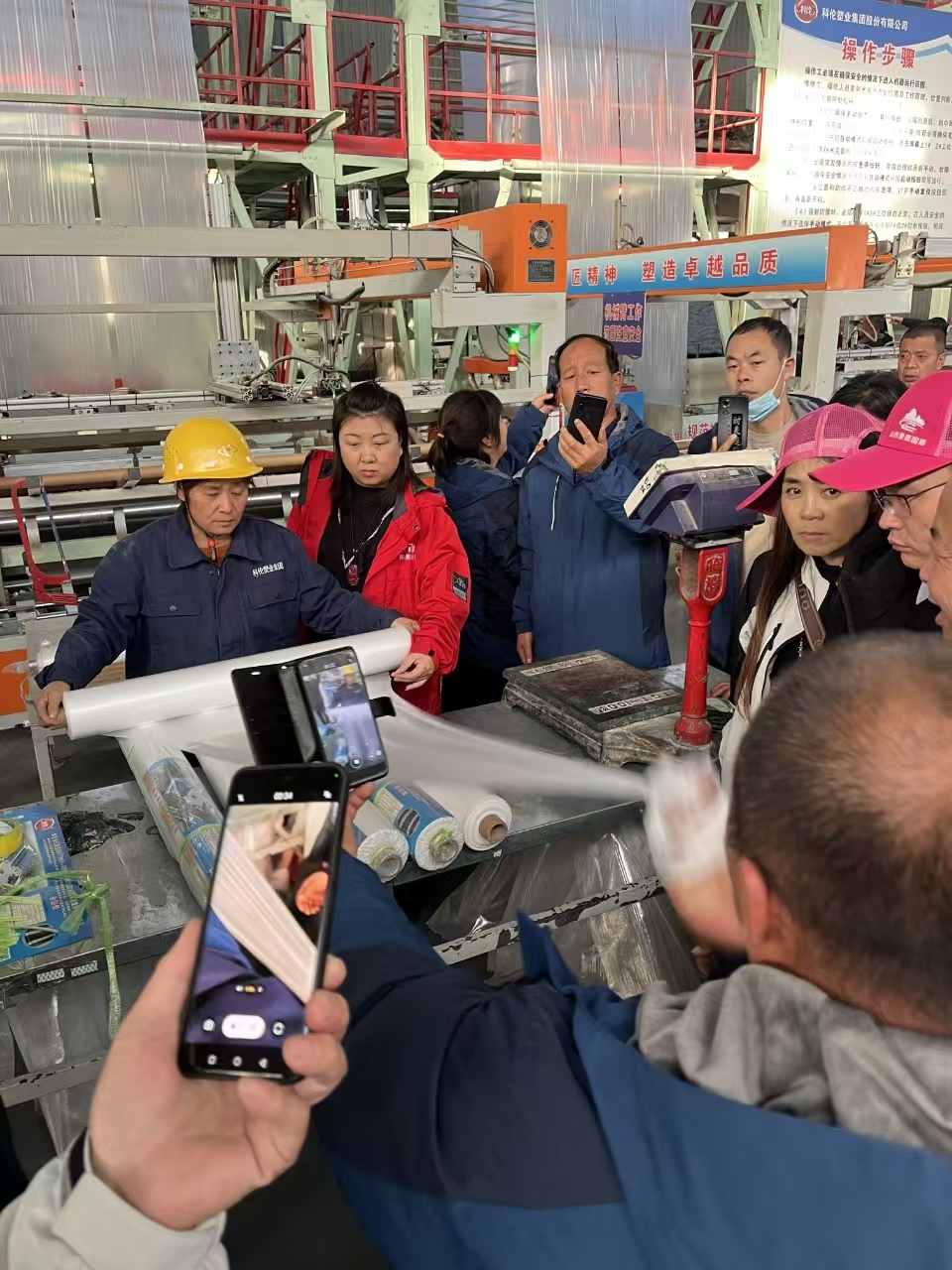 在集團(tuán)領(lǐng)導(dǎo)和公司銷售、技術(shù)人員的帶領(lǐng)下,考察團(tuán)參觀了功能棚膜車間、地膜車間、技術(shù)研發(fā)中心、展廳等處。科倫塑業(yè)先進(jìn)的集中棚膜供料設(shè)備、智能化地膜自動卷取系統(tǒng)、一流的檢驗檢測儀器受到廣大客商的高度關(guān)注和充分肯定。